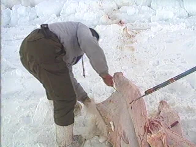 Leeveena Pauloosie’s relates a story when out polar bear hunting. Akisuk Nowdlak discusses his traditional knowledge about polar bears. He also recalls his polar bear hunting stories